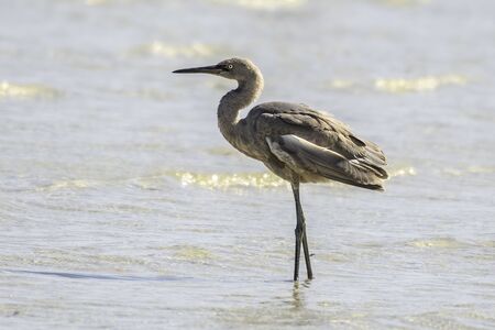 Young reddish egret stands in the Gulf waters