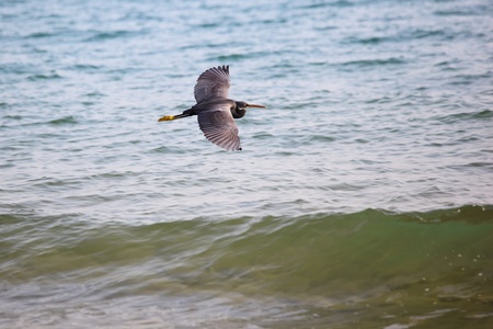 Madagascar heron bird flying over the ocean