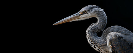 Great Blue Heron (Ardea herodias) isolated on black background