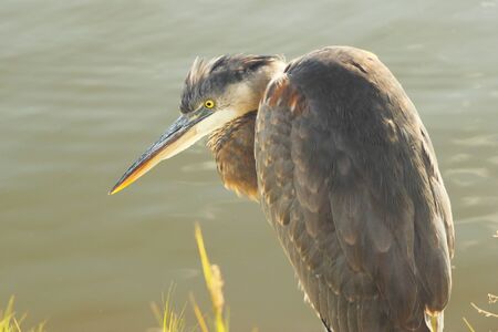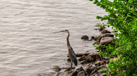 An amazing beautiful heron near the water in the wild, Ontario, Canada.