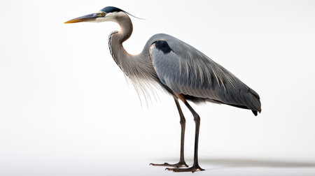 slender blue heron white background illustration elegantly vibrant, contrast pristine, backdrop sharp slender blue heron white background
