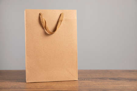 craft paper shopping bag on wooden table