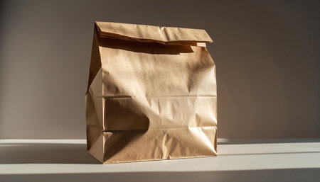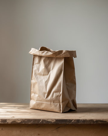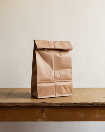 AI Generated. A brown paper bag sits on a wooden table