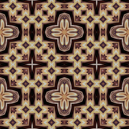 Brown Ethnic pattern. Abstract kaleidoscope fabric design.