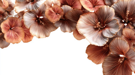 Stunning floral composition featuring hibiscus flowers in warm tones against a clean white backdrop, perfect for nature-inspired designs and elegant projects.