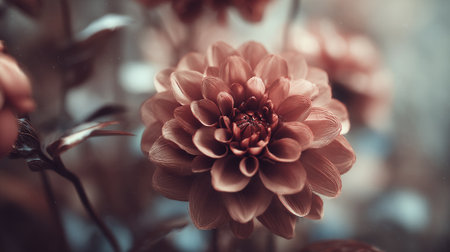 Ethereal beauty: Softly lit dahlia displaying elegant textures and layers