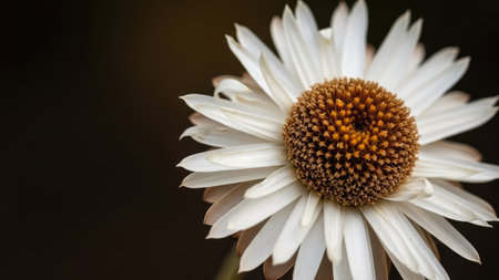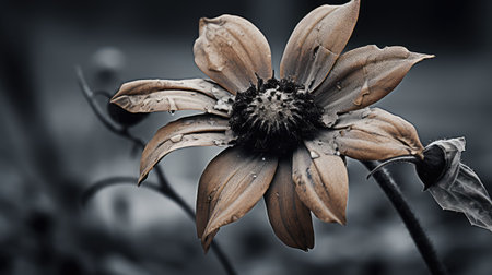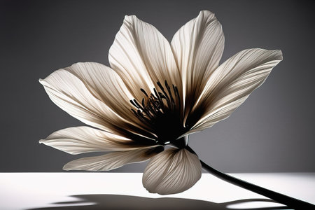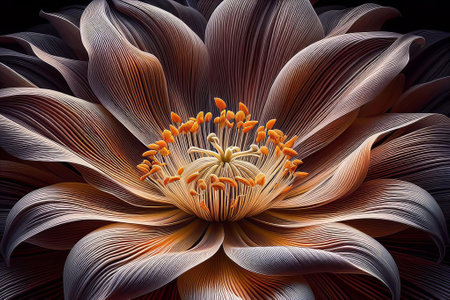 This image showcases a close-up view of a flower in full bloom, featuring detailed petals. The composition highlights the textures and shapes of the flower, set against a dark backdrop. The visual style may be used for various commercial purposes, suitable for digital art, and design projects.