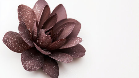 A stunning handcrafted dark purple succulent flower rests elegantly against a neutral background. This artistic piece features intricate details and a sparkling finish, highlighting the skillful craftsmanship involved in its creation.
