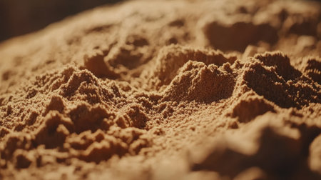 Close-up of fine sandy soil, showcasing intricate textures and grains, each tiny particle catching the light in a natural, earthy setting