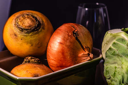 Illustrative photo of food waste: rotten vegetables in the trash. Concept Food Waste, Rotten Vegetables, Trash, Environment, Sustainability