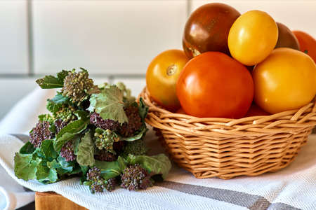 flat lay basket organic vegetables with copy space. High quality beautiful photo concept