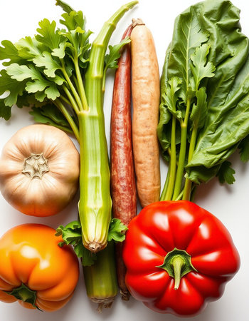 Vegetable food organic pepper tomato basil assortment vegetarian concept