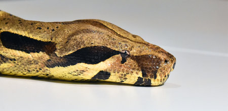 Colombian Boa. Tropical brown constrictor. Snake skin with yellow and black spots on a white background