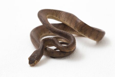 The radiated ratsnake, copperhead rat snake or copper-headed trinket snake (Coelognathus radiatus) is a nonvenomous species of colubrid snake isolated on white background