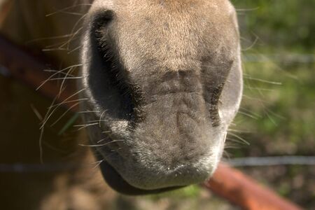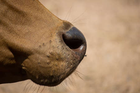 Front part of purebred racehorse muzzle with nostrils and short hair