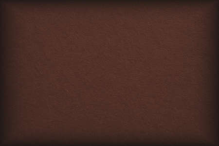 The surface of brown cardboard. Paper texture with cellulose fibers. Cafe noir color background. Textured graceful classic backdrop with vignetting. dark paperboard wallpaper. top-down. Macro