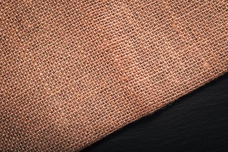 Background presentation concept for organic product or craft work by sackcloth and black slate stone