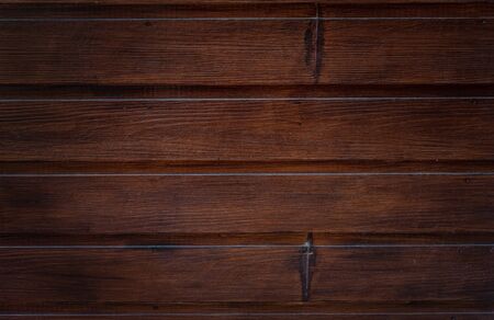Shabby wooden wall background. Obsolete carpentry boards, panel. Surface of wooden texture for design and decoration. Dark brown horizontal wood plank grunge texture. Natural backdrop. Copy space