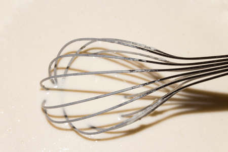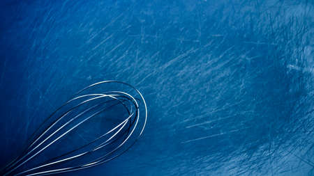 Metal rods to beat, stir or mix food when preparing a recipe manually by a chef. Cooking utensil.