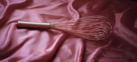 Pastry whisk on pink fabric, pastry tools, generative AI