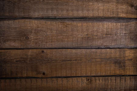 Shabby wooden wall background. Obsolete carpentry boards, panel. Surface of wooden texture for design and decoration. Dark brown horizontal wood plank grunge texture. Natural backdrop. Copy space