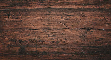 Textured wood grain background in dark and rich tones adds depth and warmth to design