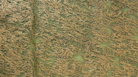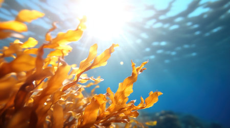 AI Generated. Closeup of yellow seaweed in the water on the ocean shore