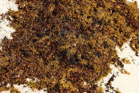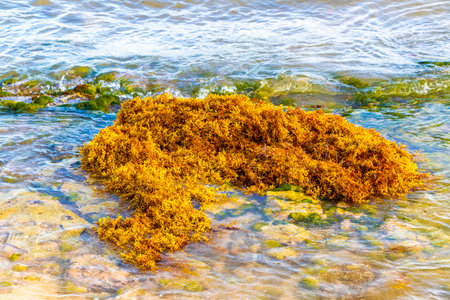 Seaweed algae kelp in Mexico Caribbean white sand beach