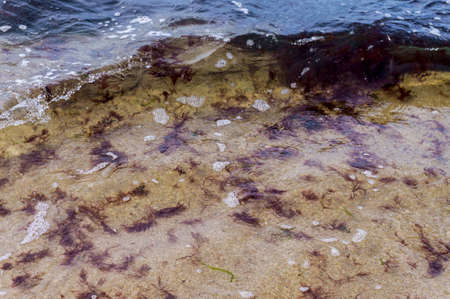Seaweed on the shore of the Baltic Sea. Selective focus.