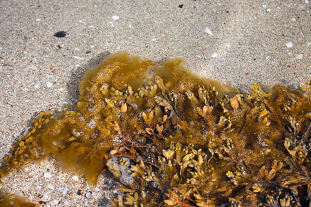 Seaweed on a beach in Ireland. Coast of the Irish Sea.