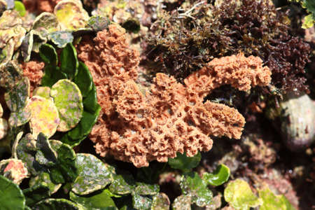 Natural background with texture of Seaweed Fucus spiralis on the stone