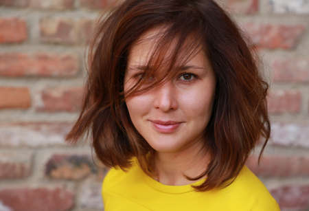Smiling young woman with wavy red hair