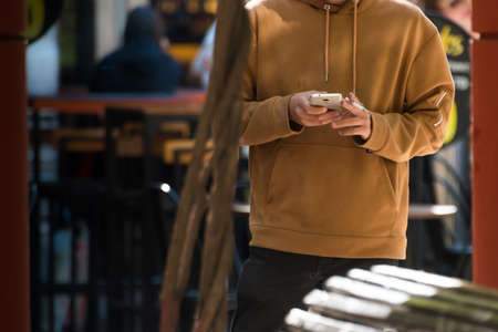A young woman enjoying a cup of coffee on a crisp autumn day outdoors