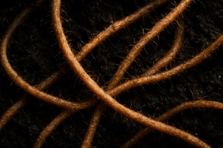 Detailed close-up view of intertwined natural fibers showcasing warm golden tones and intricate textures, ideal for design projects, textile applications, or artistic inspiration