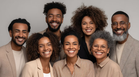 A vibrant and joyful group of diverse friends standing together, showcasing their unique hairstyles and expressions of happiness.