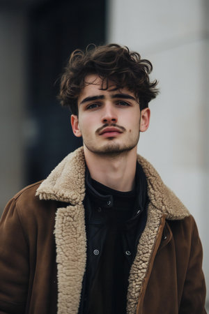 Young woman with curly hair and a cozy sweater. Warm tones composition.