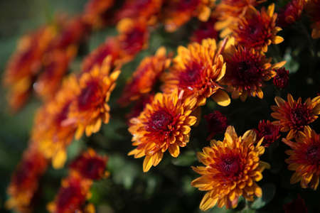 orange-red Korean chrysanthemum flowers in the garden in autumn as background