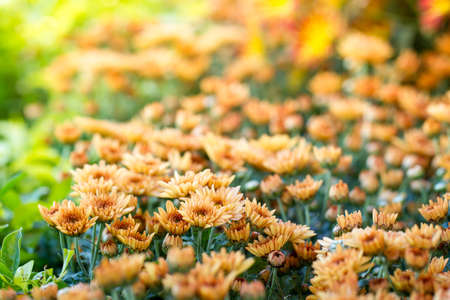 Orange hardy chrysanthemum plants as a pattern. Abstract flower background texture