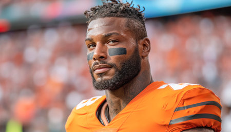 American football player standing on the sidelines of the football field during a game, watching the action