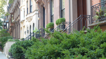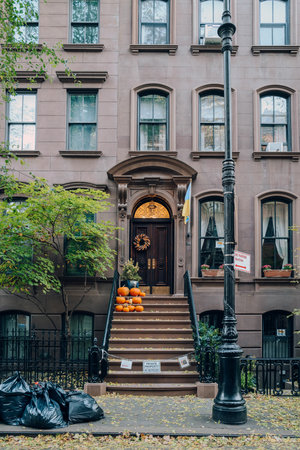 Row of historic brownstone buildings in the Upper West Side of Manhattan in New York City