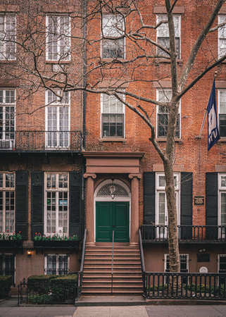 Brick residential buildings along Washington Square North, in the West Village, Manhattan, New York City