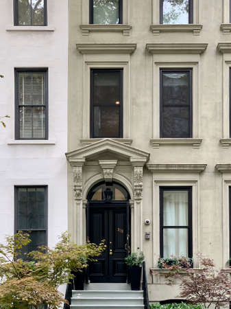 Row of houses in Manhattan, New York City, USA. Typical American architecture.