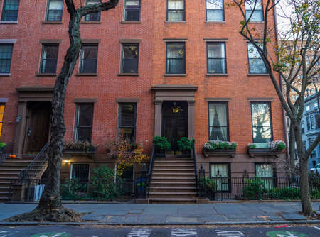 Historic district of West Village and empty streets at New York Manhattan, USA