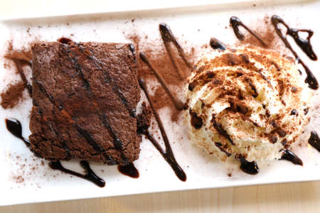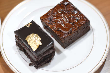 Brownies chocolate ingredient swett dessert for tea time or coffee time.Homemade fresh and tasty food.Soft brownies bakery snack .