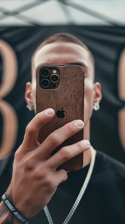 Young man hold a smartphone while using tiktok app,social network tech addiction