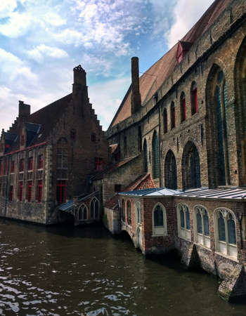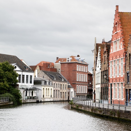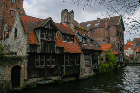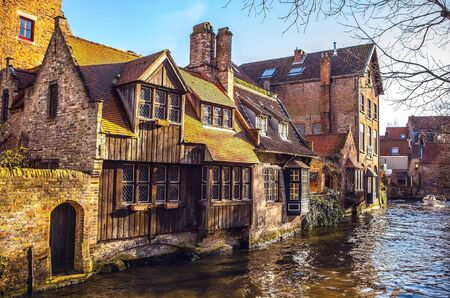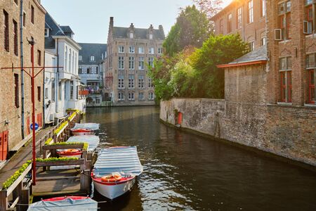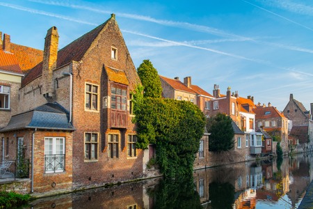 Europe travel background - canal and medieval houses. Bruges (Brugge), Belgium