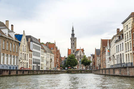 Bruges, Belgium - July 29, 2016: Canal scene in the city of Bruges. The historic city centre is a World Heritage Site of UNESCO. It is known for his picturesque cobbled lanes and dreamy canals