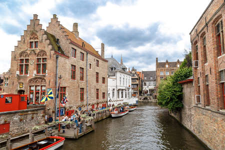 Bruges, Belgium - 29 June 2019: Bruges canals and architecture in summer