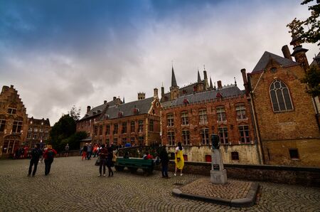 Brugge/Belgium - 26/10/2019: Beautiful houses of the main city square.