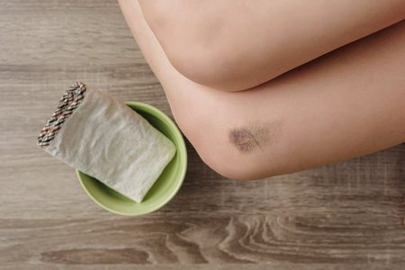 A close up view of a bruised elbow reveals discoloration and swelling from recent impact showcasing the bodys healing process.